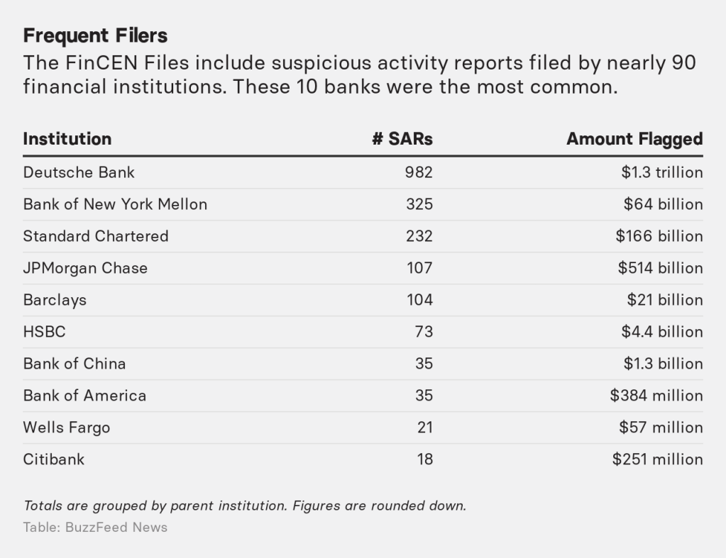 Amerikan Mali Suçları Engelleme Ağına (FinCEN-Financial Crime Enforcement Network) gönderilen Şüpheli Faaliyet Raporları şüphe uyandıran milyarlarca Doların hala özgürce el değiştirdiğini gösteriyor. 2 bin 100 gizli belgeden oluşan FinCEN belgeleri Uluslararası Araştırmacı Gazeteciler Konsorsiyumu (ICIJ) tarafından açıklandı.
