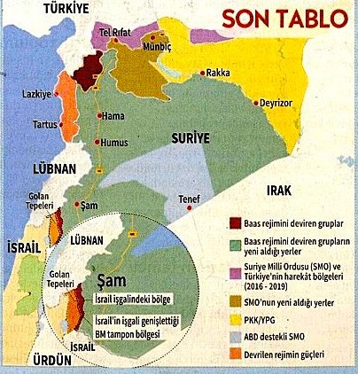 Bu arada İsrail ordusunun bir çekirge sürüsü gibi Suriye’de başlattığı işgali Golan Tepeleri’nin ardındaki BM gözetimindeki “tampon bölge” ye doğru yaydığı ve Şam’a 20 km yaklaştığı haberlerde yer aldı. Bölgede şu anda tam bir kaos yaşandığı, bazı Suriye köylerinin İsrail’in işgaline boyun eğerken bazılarının da zorla tahliyelere direnmeye çalıştığı haberleri geliyor. Görünen o ki Suriye yağma Hasanın böreği gibi tepeden tırnağa yağmalanacak.